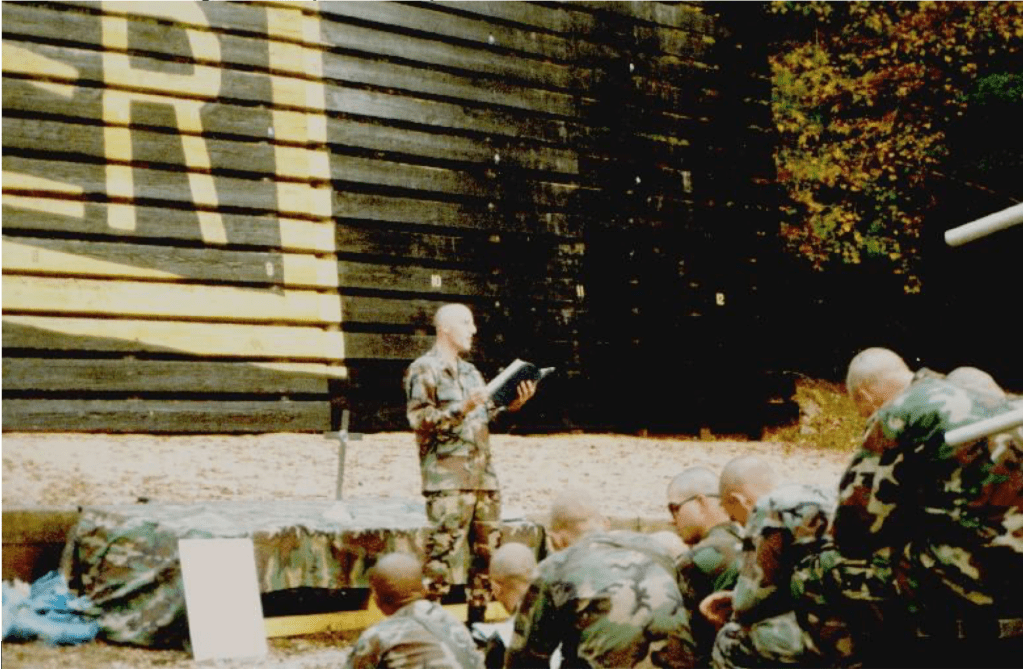 Preaching at the Mountain Ranger Camp of the U.S. Army Ranger Course. I served as the Ranger School chaplain from 1998 to 2001, preaching and leading worship services at the Ranger Course camp at Ft Benning, the Mountain Ranger Camp at Dahlanega, GA, and at the Florida Ranger Camp at Eglin Air Force Base, FL.
